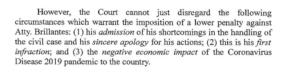 WHAT WERE THE REASONS ATTY BRILLANTES WAS NOT DISBARRED BUT WAS ONLY SUSPENDED FOR 6 MONTHS?