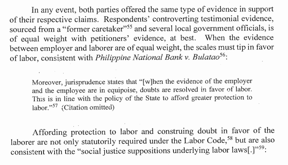BOTH PARTIES PRESENTED EVIDENCES OF EQUAL WEIGHT. PETITIONER WORKERS PROVED THAT THEY WERE EMPLOYEES. EMPLOYER RESPONDENT PROVED THAT THE PETITIONERS WERE NOT EMPLOYEES. SC RESOLVED THE DOUBT IN FAVOR OF THE EMPLOYEES.