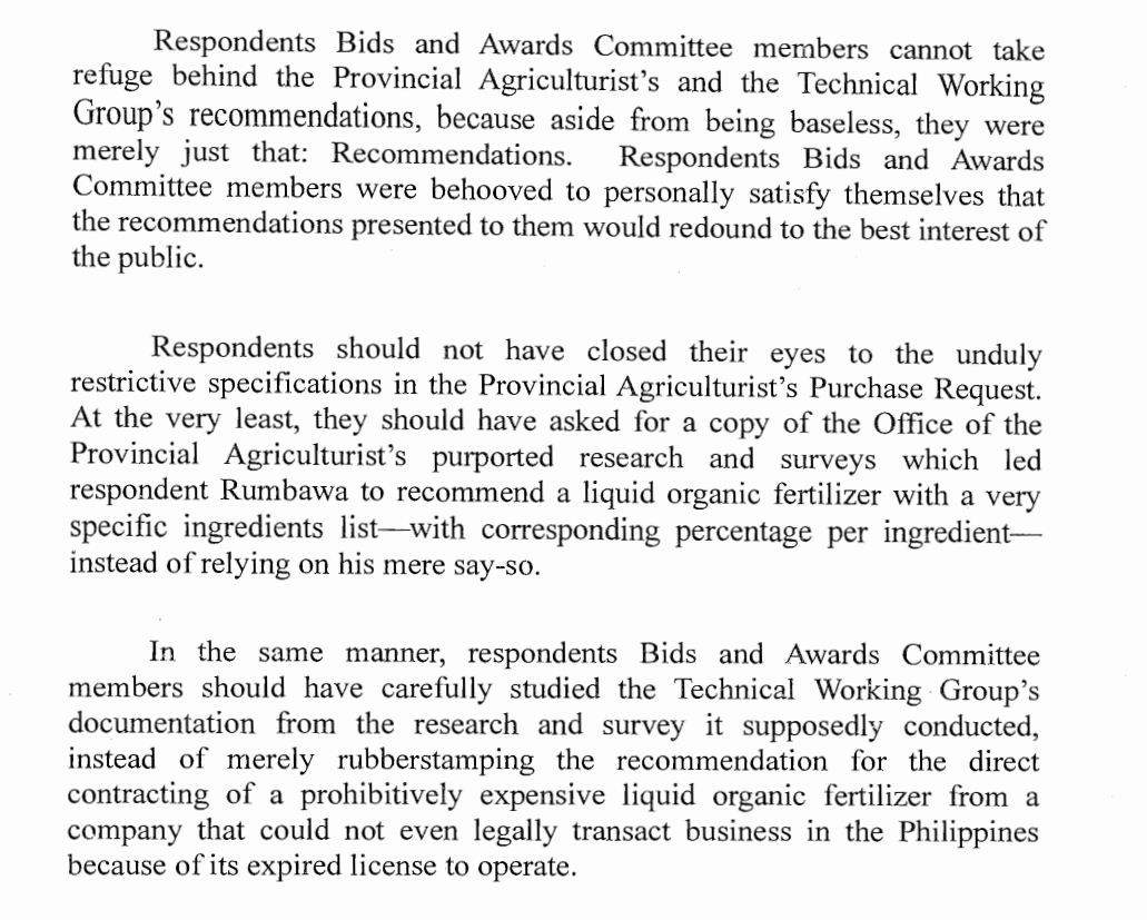 IT WAS DISCOVERED THAT THE MEMBERS OF THE AWARDS COMMITTEE COLLUDED WITH EACH OTHER TO ENSURE THAT A COMPANY WOULD  GET THE CONTRACT TO SUPPLY AN OVERPRICED ORGANIC FERTILIZER.