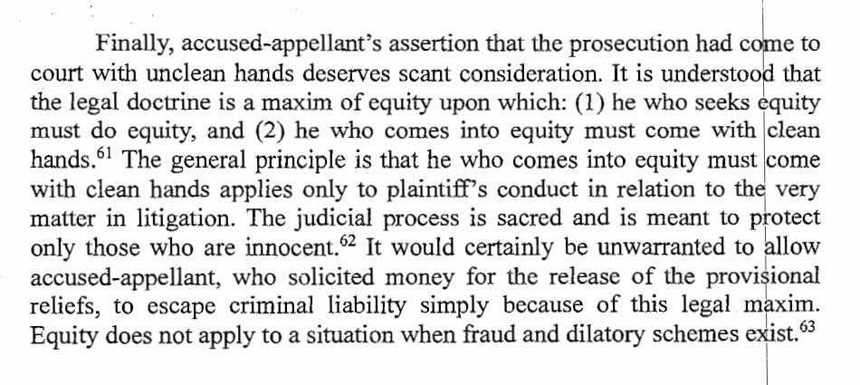 ON THE RULE THAT ONE WHO COMES TO COURT MUST COME WITH CLEAN HANDS. THIS DOES NOT AP,PLY TO A SITUATION WHERE FRAUD AND DILATORY SCHEMES EXIST.